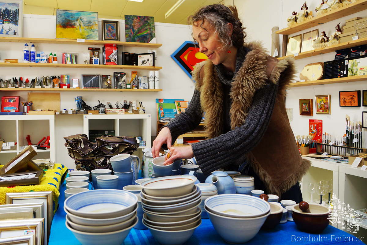 In der Helgolandsgade 2 in Svaneke im äßersten Osten der Insel Bornholm befindet sich die ART BOX Bornholm, ein ElDorado für Kunstbegeisterte - eine Mischung aus Art Shop, Galerie und Atelier. Im Laden der Künstlerin Maya Hjort Petersen kann man alles zum Thema Kunst, Malerei, Grafik, Keramik, Bildhauerei und Fotografie kaufen, sowie Arbeiten verschiedener Künstler von der Insel Bornholm und außerhalb. Neben Farben, Pinseln, Papier, Skizzenbüchern, Stiften, Rahmen und anderen Mareialien findet man im Laden ein reichhaltiges Angebot an wunderschönen Ansichtskarten von Bornholm. Auch die beliebten Bornholm-Poster von Mats Berg kann man hier erwerben.