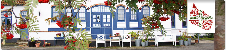Im Zentrum der dänischen Insel Bornholm unweit von Østermarie auf dem Almindingenvej in Richtung Rønne liegt direkt an der linken Straßenseite ein auffälliger Blau-Weiß gestrichener Fachwerkhof - Fru Petersens Cafe. Essen wie bei Oma, dafür ist Fru Petersens Cafe bekannt und berühmt. Gutes Mittagessen und ein großes Kuchenbuffet locken Gäste von der ganzen Insel an.