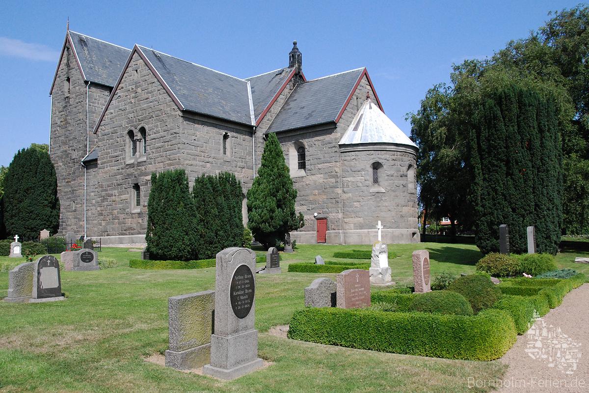 Die Østermaie Kirche oder Kreuzkirche ist ein recht neuer Kirchenbau. Er stammt aus dem Ende des 19. Jahrhunderts und erstzte die alte Gamle Kirke. Der massive Bau in neuromanischem Stil wurde aus Granit der Umgebung ausgeführt, dem sogenannten Paradisgranit. Auf dem Friedhof sind die Überreste der Gamle Kirke zu besichtigen. Die vor allem aufgrund der außergewöhnlichen Dachkonstruktion unter Denkmalschutz stehende Ruine hält auch im Inneren einige Überraschungen bereit. Erbaut wurde die Kirche mit einem quadratischen Grundriss im 12. Jahrhundert. Mehr ...
